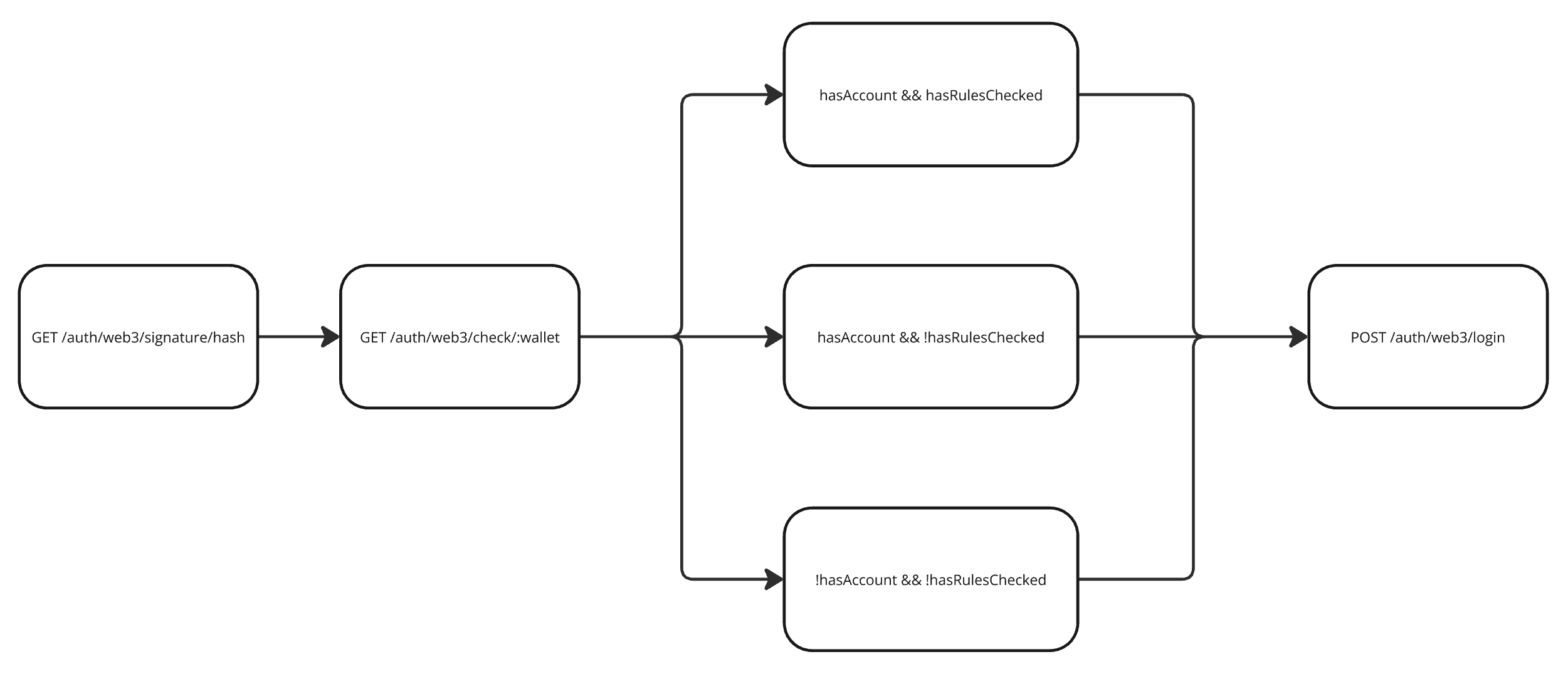 Check if the user has an account in the system and if he has to accept the regulations based on WEB3