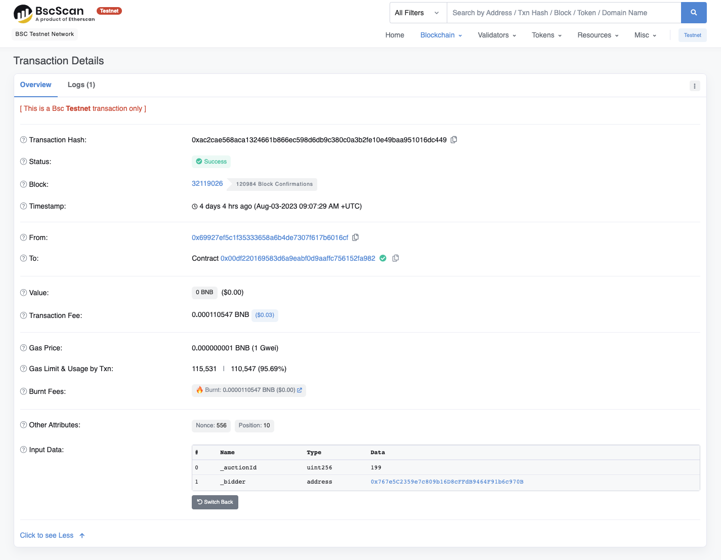 {% embed url="<https://testnet.bscscan.com/tx/0xac2cae568aca1324661b866ec598d6db9c380c0a3b2fe10e49baa951016dc449>" %}
