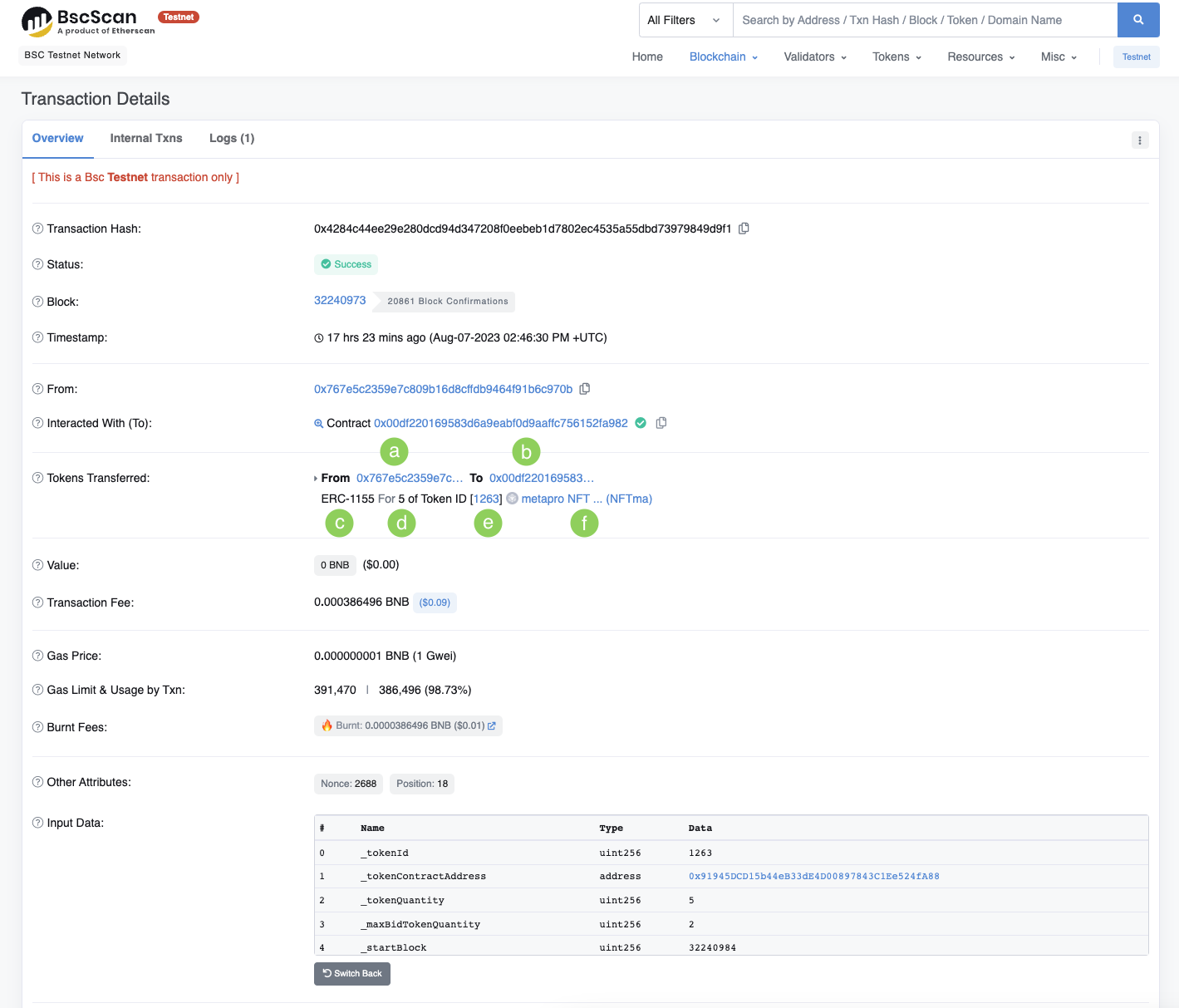 **e. Token Transferred:** Token ID \[number of the token ID]