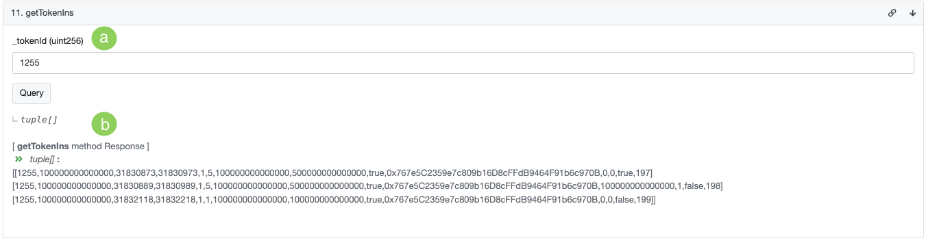 <table data-header-hidden><thead><tr><th width="185"></th><th></th></tr></thead><tbody><tr><td><strong>Data</strong></td><td><strong>Description</strong></td></tr><tr><td>tokenId (uint256)</td><td>The ID of the token for which we want to retrieve the created INS auctions.</td></tr></tbody></table>
