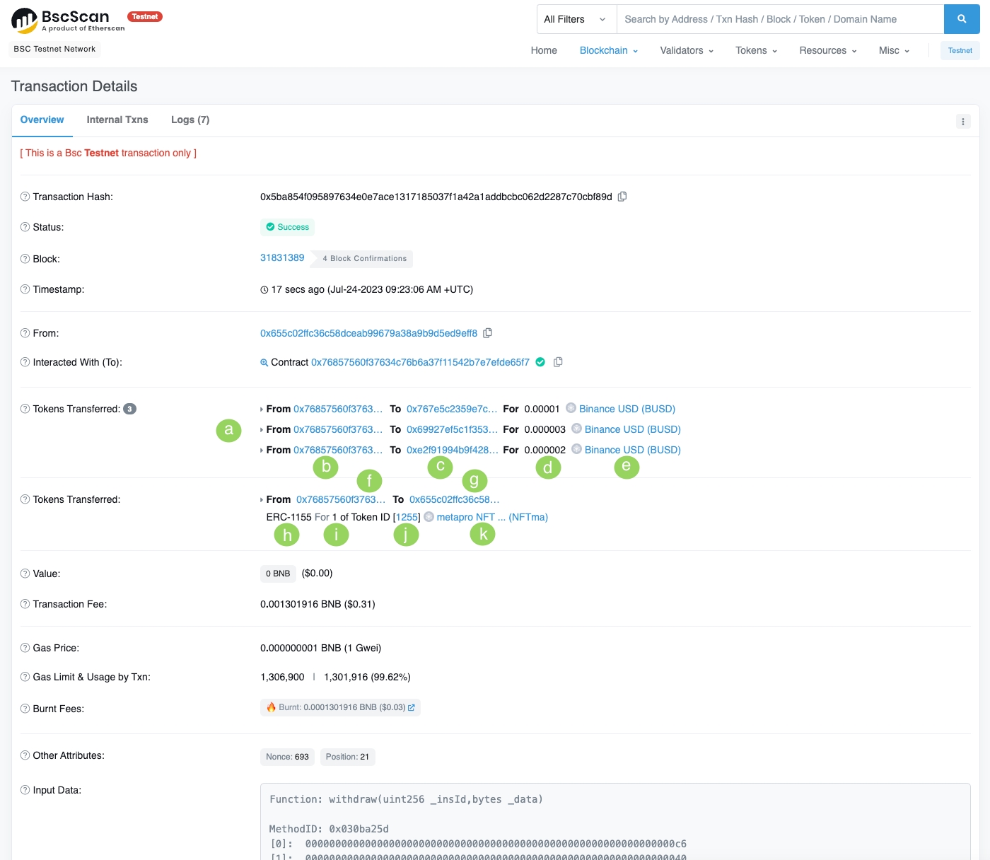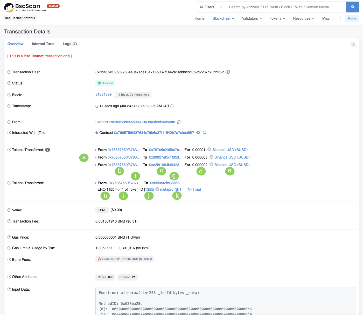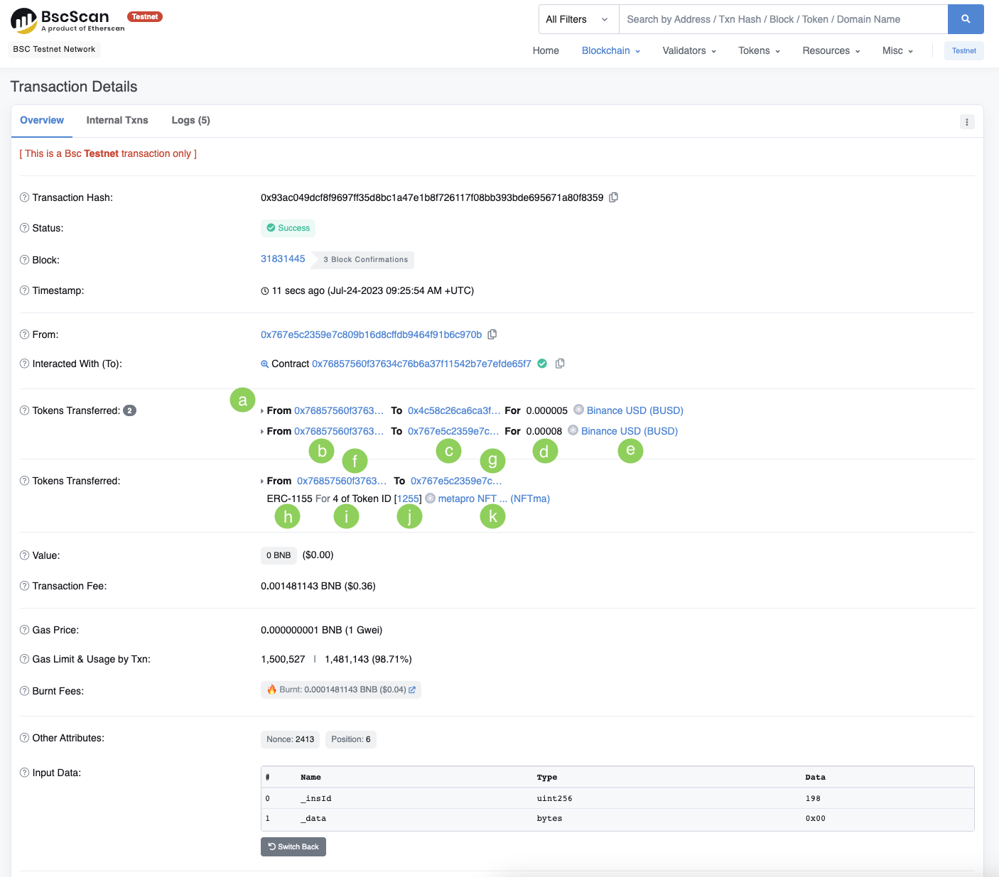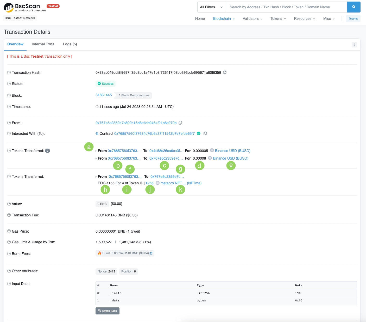 a. Tokens Transferred: Visible 2 transaction, the first transaction shows the price of the treasury second shows what the owner received