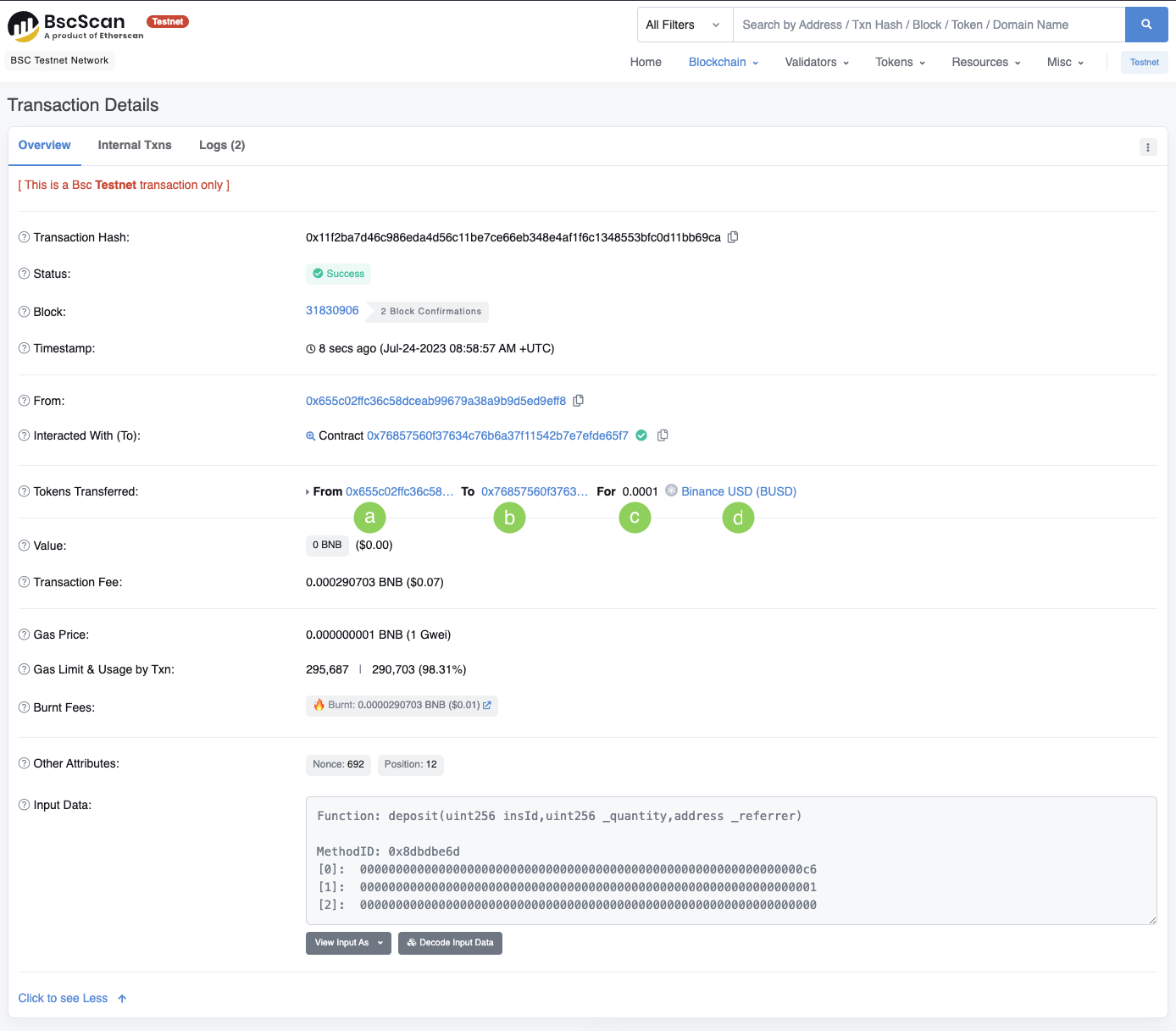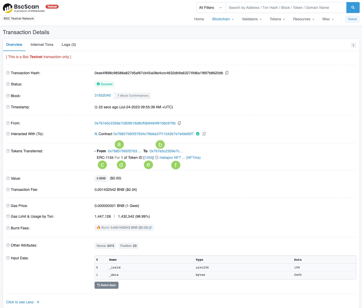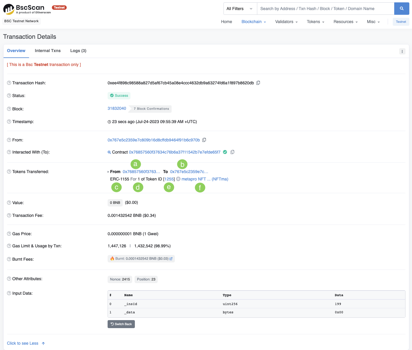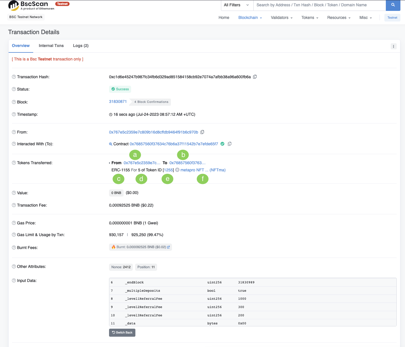 a. Tokens Transferred: Visible 2 transaction, the first transaction shows the price of the treasury second shows what the owner received
