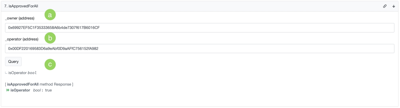 The isApprovedForAll method is used to determine whether a specific user has been granted approval to operate on a designated contract. This approval can encompass various operations, such as the handling of tokens on a contract responsible for conducting auctions, like the BuyNow auction contract.