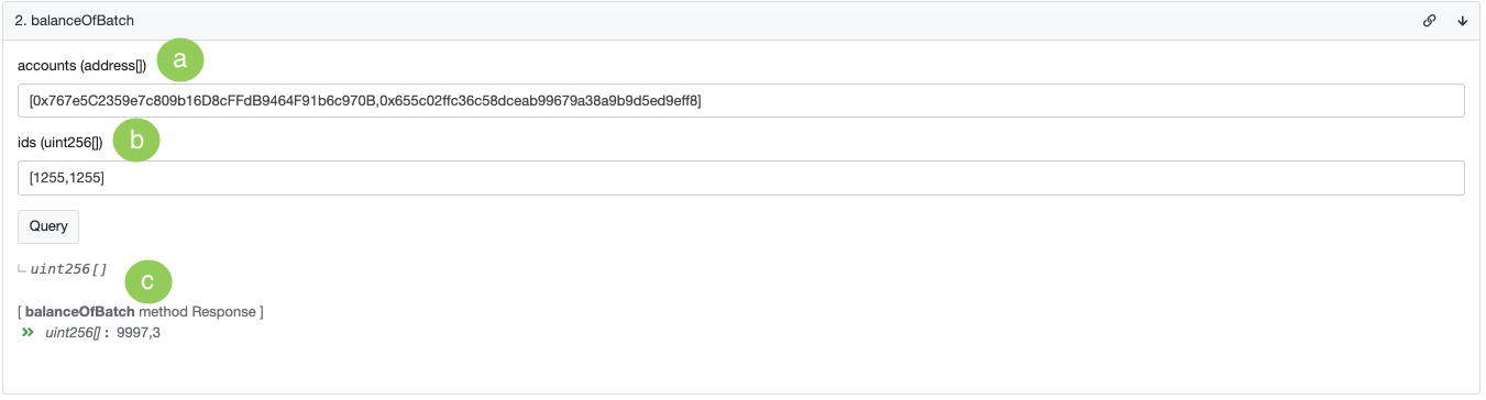 b. Input token IDs in array [tokenIDforAddress1,tokenIDforAddress2,...]
