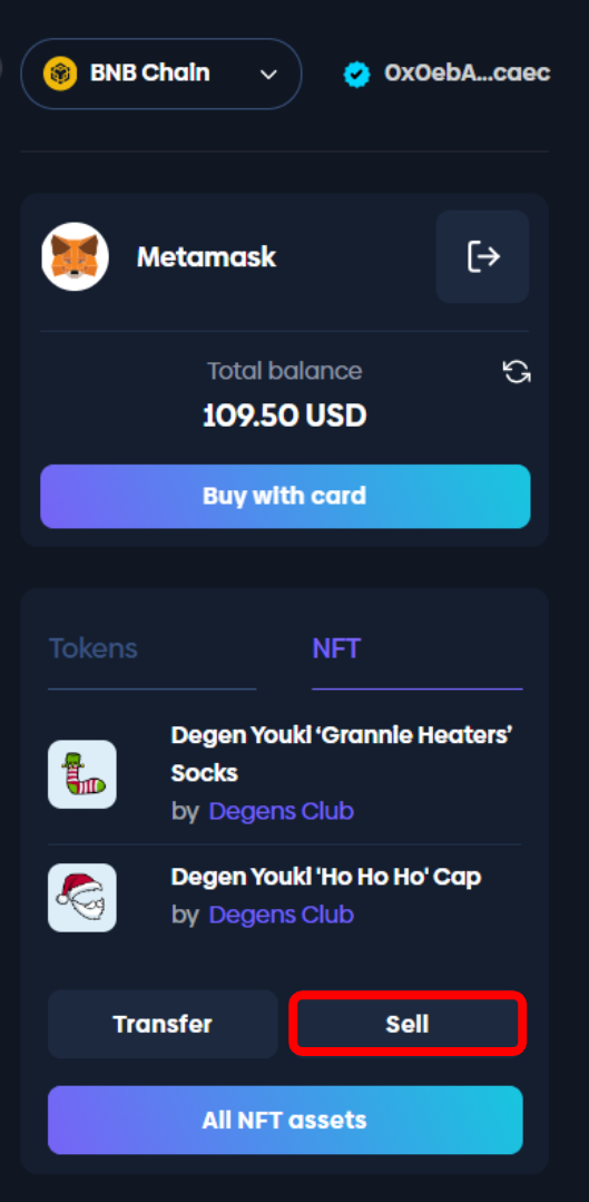 You can sell your NFT directly from your [side panel](https://docs.metaproprotocol.com/metapro-market/connect-wallet-+-web3-login/side-panel).&#x20;