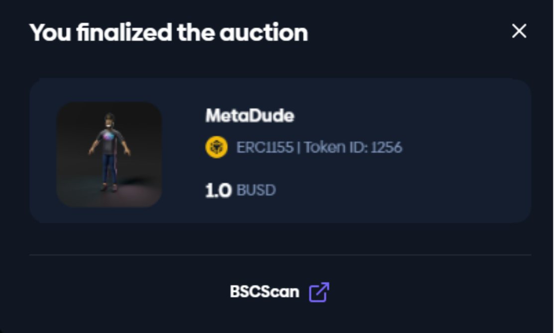 If the Auction sale finalize function is successful, it means that the auction has been completed, the funds have been transferred to the operator's account, and the NFTs have been assigned to the buyers addresses.