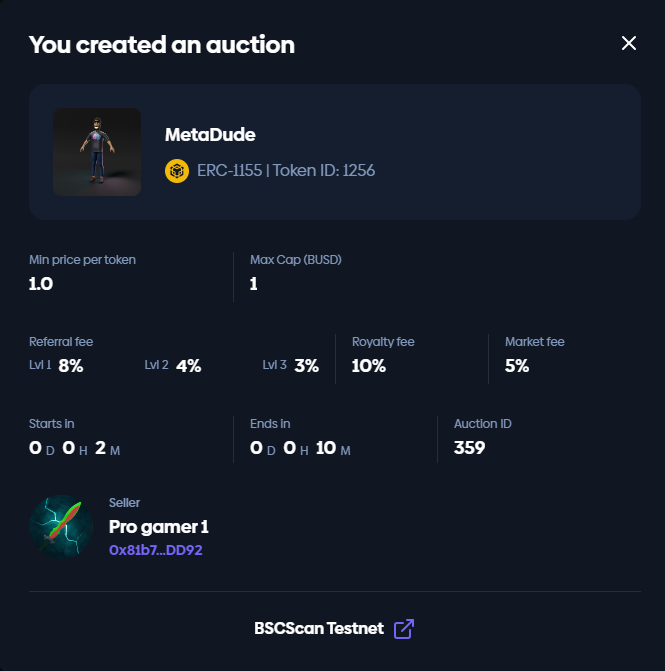Choose [**Auction**](https://docs.metaproprotocol.com/metapro-market/side-panel/sell-nft/auction-bidding)