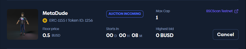 Maximum Cap specifies the maximum number of NFT tokens that can be sold for this Buy Now auction. If the number of NFT tokens sold during the auction reaches this parameter, the auction will end successfully