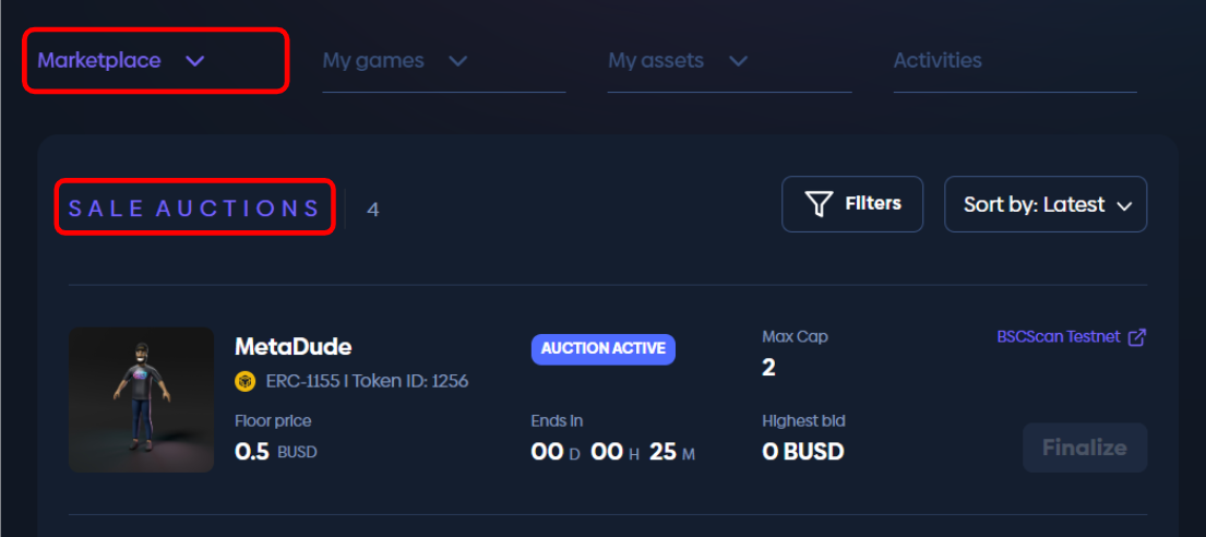 Select [**Marketplace**](https://docs.metaproprotocol.com/metapro-market/top-menu/profile/profile-marketplace) from your profile > Sale auctions and click **Finalize**