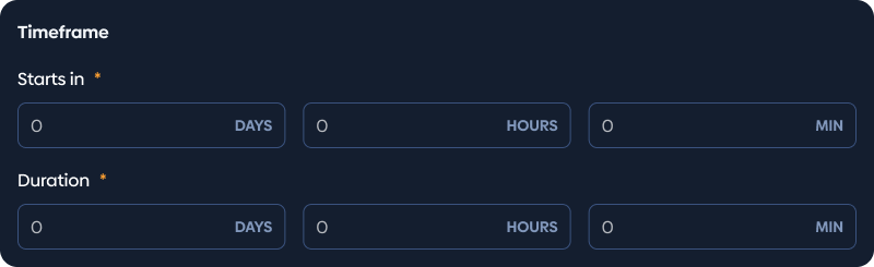 ✔ This section enables you to set the start time and duration for your Auction.