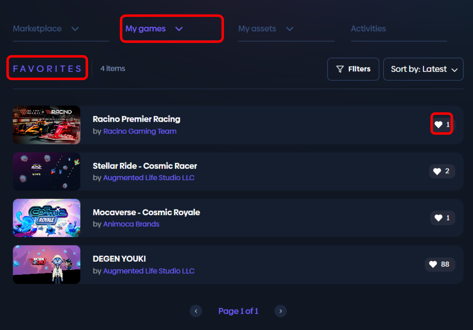 This function allows users to keep track of their favorite games. When users mark game as a favorite, it appears in this section of the user's profile, making it easier to find and access. This feature can be particularly useful for gamers who want to keep a list of their preferred games or activities.