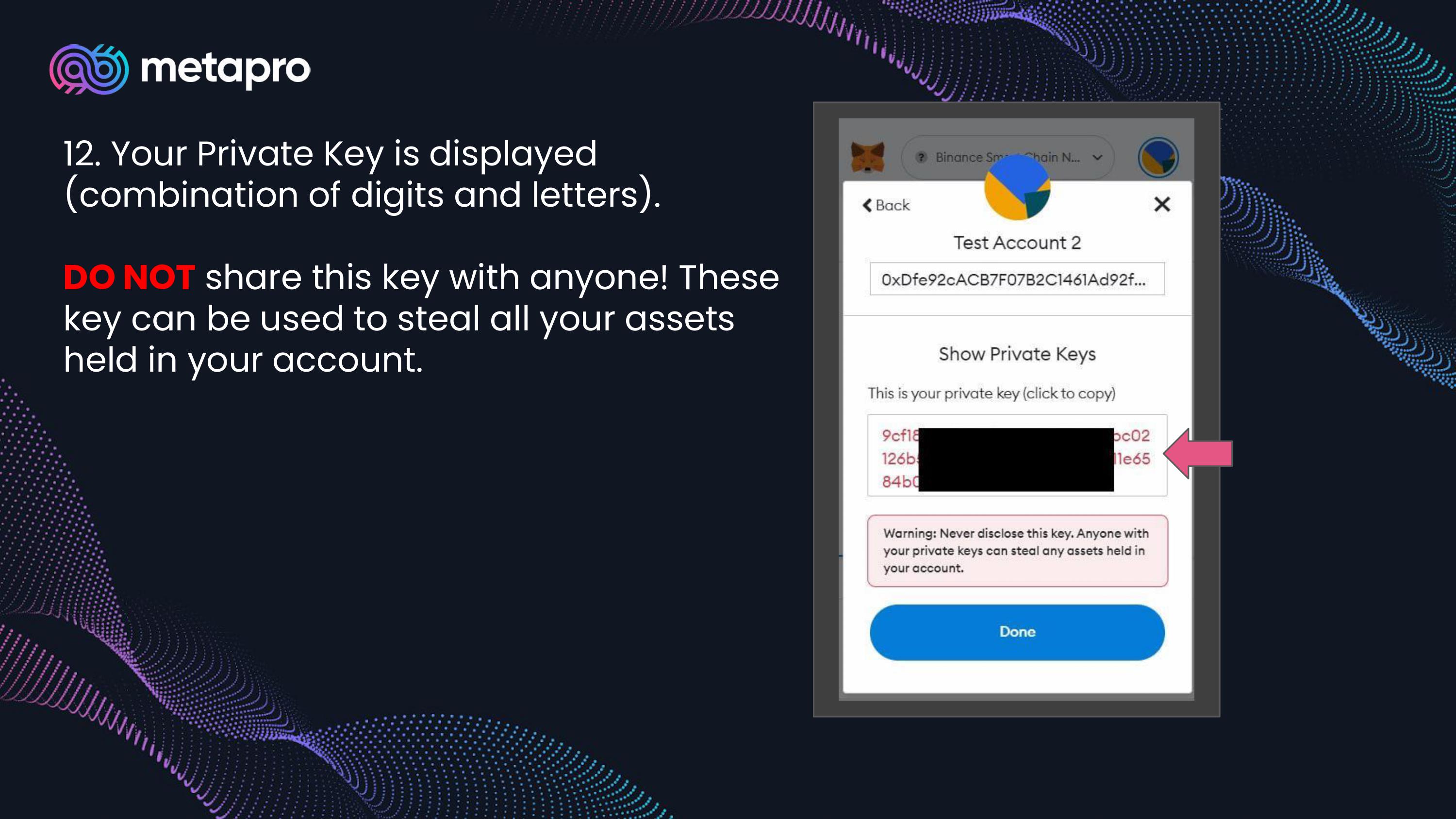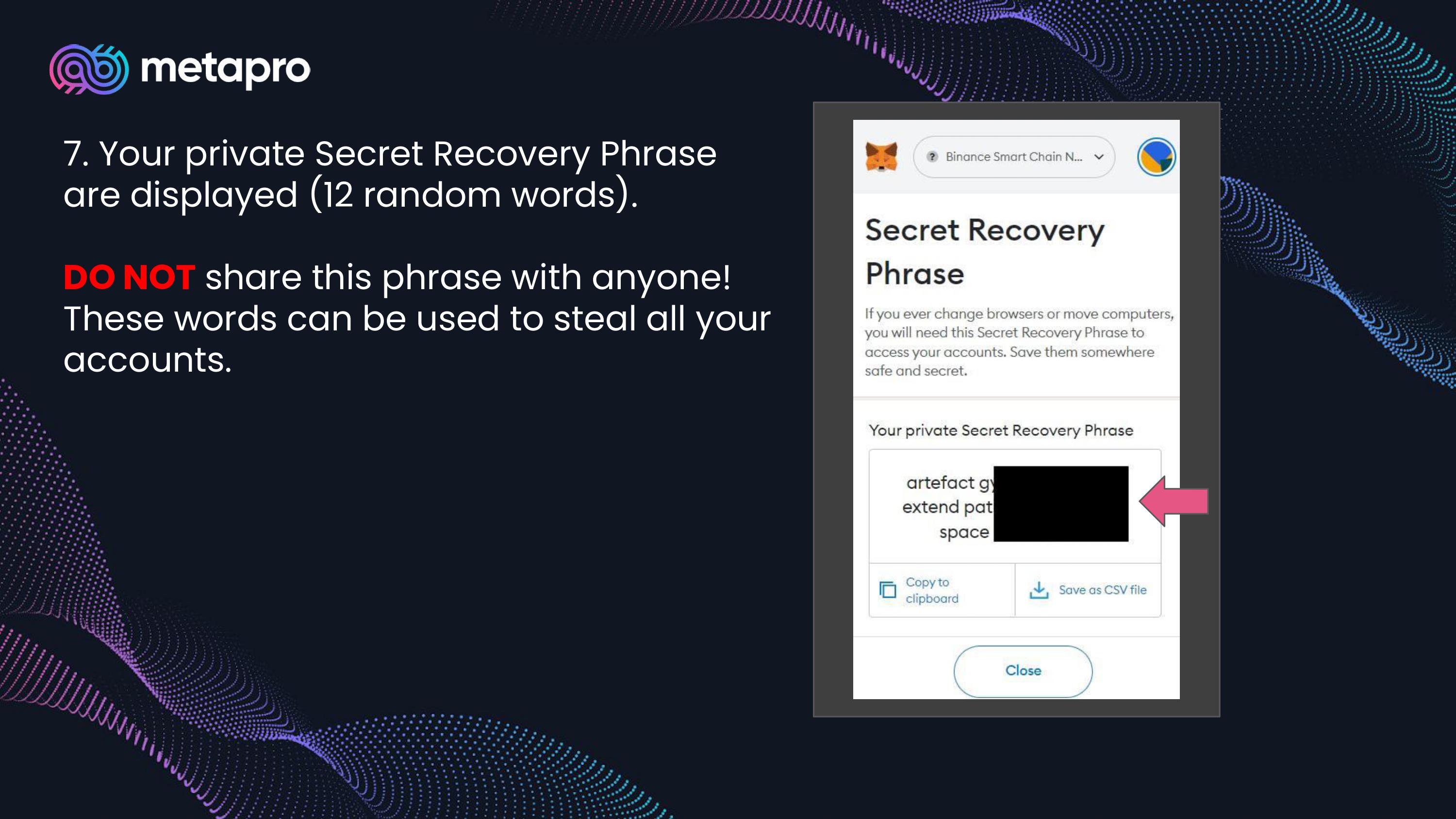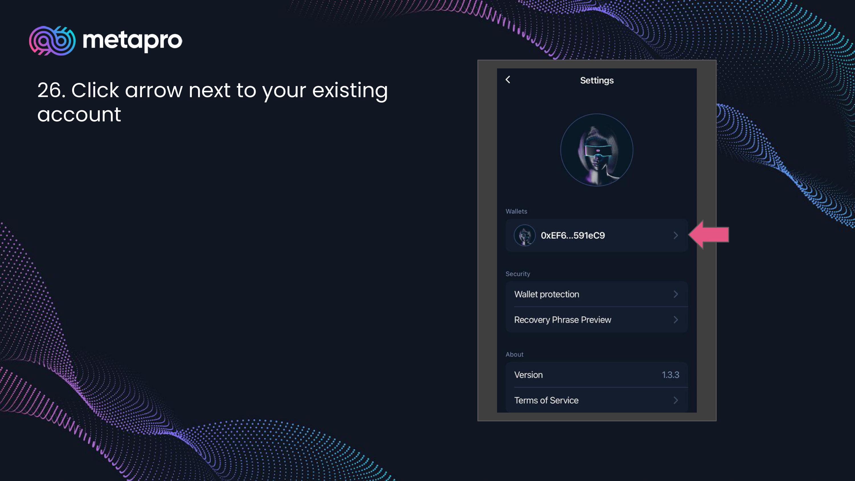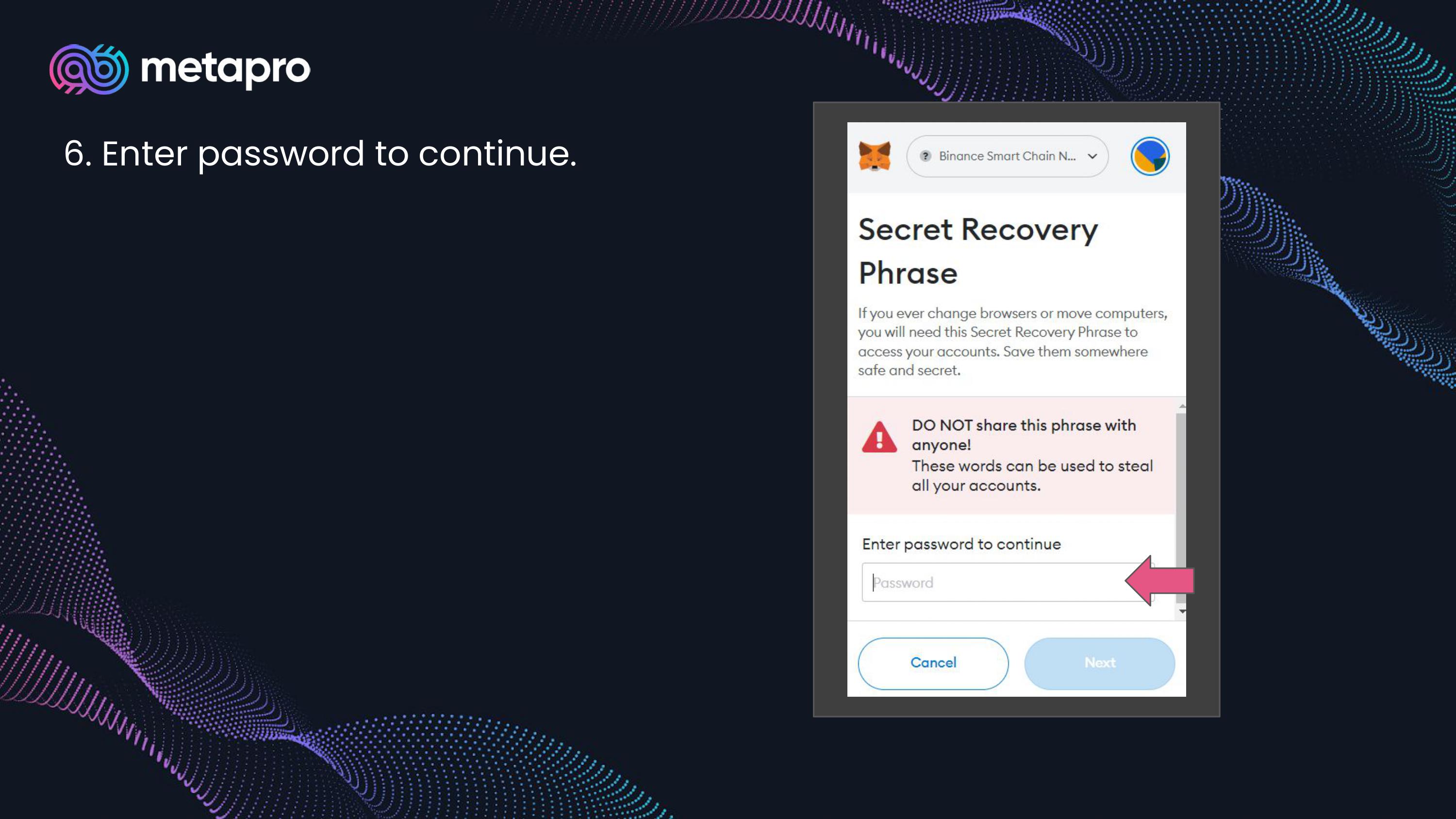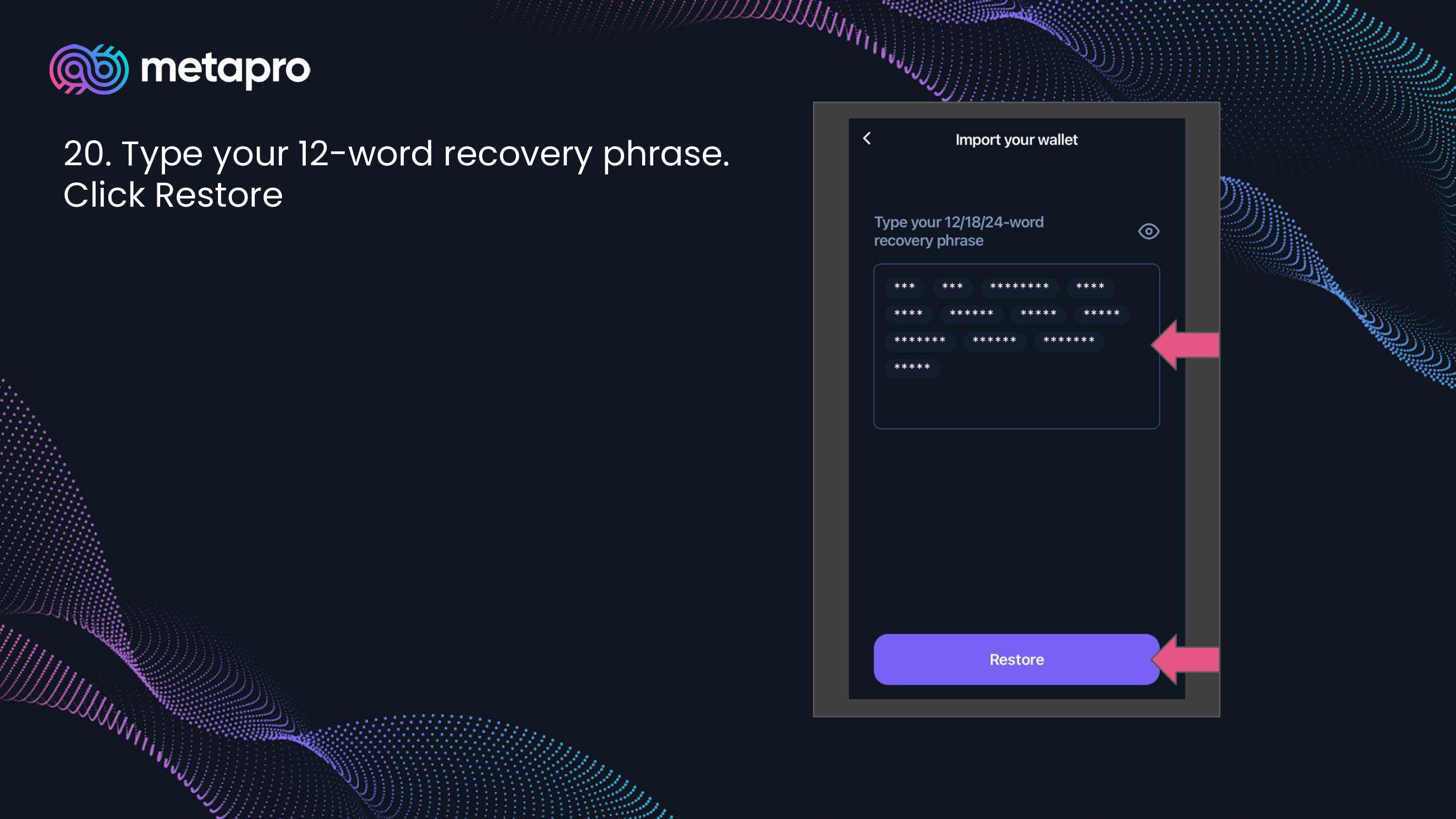 Keep in mind that you should only import a wallet if you are the owner of the private key and you have access to the associated password or phrase. Importing a wallet allows you to access and manage the assets associated with that wallet using metapro.