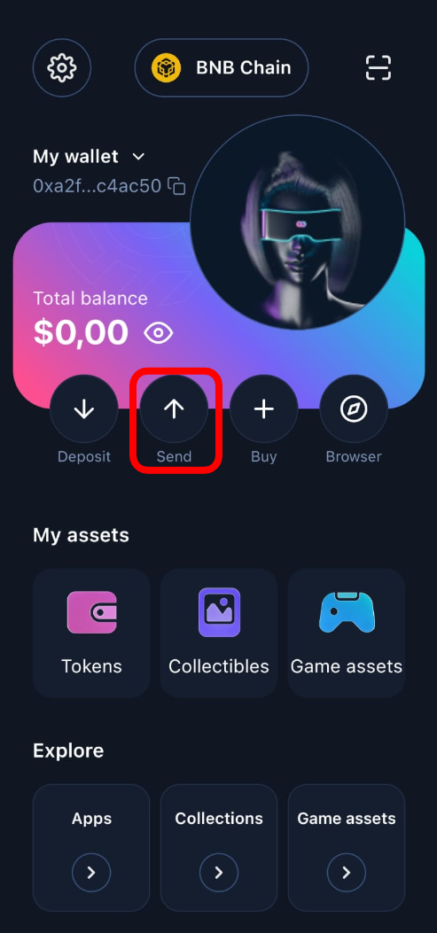 Send option in our wallet allows users to transfer both tokens and digital collectibles to other wallets. This feature provides a secure and intuitive way to send cryptocurrencies or NFTs across different blockchains. Users can select the specific token or collectible, input the recipient's address, and confirm the transaction with ease. The wallet ensures that all transfers are encrypted and processed swiftly, maintaining full control over your assets.