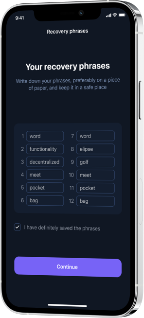 <figure><img src="https://2351247042-files.gitbook.io/~/files/v0/b/gitbook-x-prod.appspot.com/o/spaces%2F9QQIPimQeOGE3C1HbWxf%2Fuploads%2FhQlYb4Ddl9kSwkO6U6rK%2Frecoveryphrases-mockup%20(6).png?alt=media&#x26;token=cca1c639-3965-48a8-a225-6a84f4301418" alt=""><figcaption></figcaption></figure>